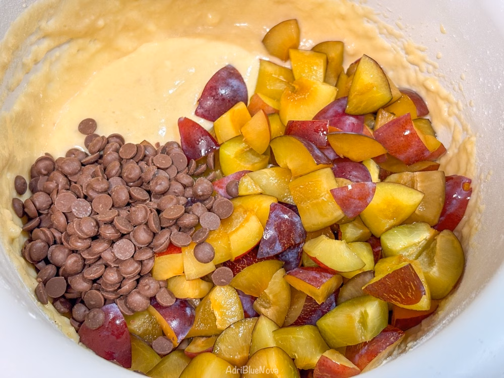 Die Zubereitung dieses Rezepts erfolgt in wenigen einfachen Schritten. Zunächst werden die Zwetschgen klein geschnitten und beiseite gestellt. Für den Teig werden in einer Schüssel Butter, Puderzucker, Eier und Vanillezucker schaumig geschlagen. Anschließend werden die trockenen Zutaten – Mehl, Backpulver, Mandeln und Zimt – abwechselnd mit der Buttermilch untergerührt, bis ein glatter Teig entsteht. Zum Schluss werden die Zwetschgenstücke und Schokodrops vorsichtig untergehoben.