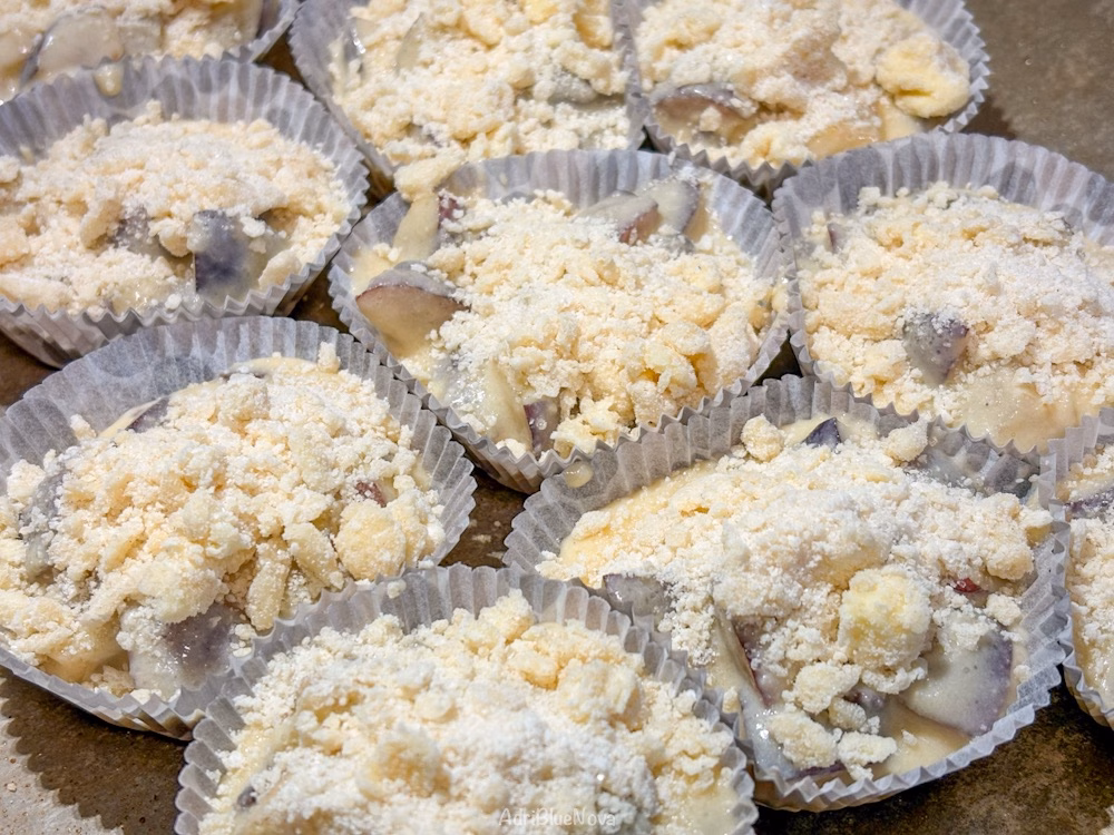 Der fertige Muffinteig wird gleichmäßig in die Muffinförmchen gefüllt, mit den Streuseln bestreut und bei 180 Grad Umluft für etwa 25 bis 30 Minuten gebacken, bis sie goldbraun sind. Ein köstlicher Duft wird das Haus erfüllen und die Vorfreude auf diesen herbstlichen Genuss steigern. Die Zwetschgen-Streusel-Muffins schmecken noch leicht warm sehr köstlich, können jedoch abgekühlt auch eingefroren werden um sie später zu genießen.